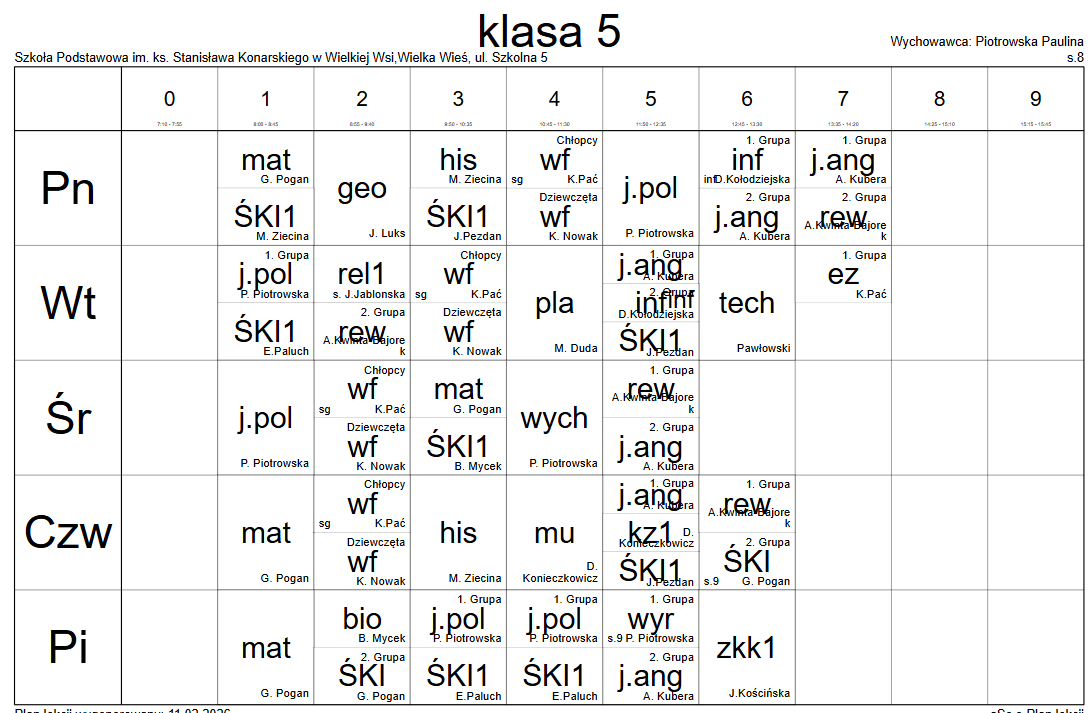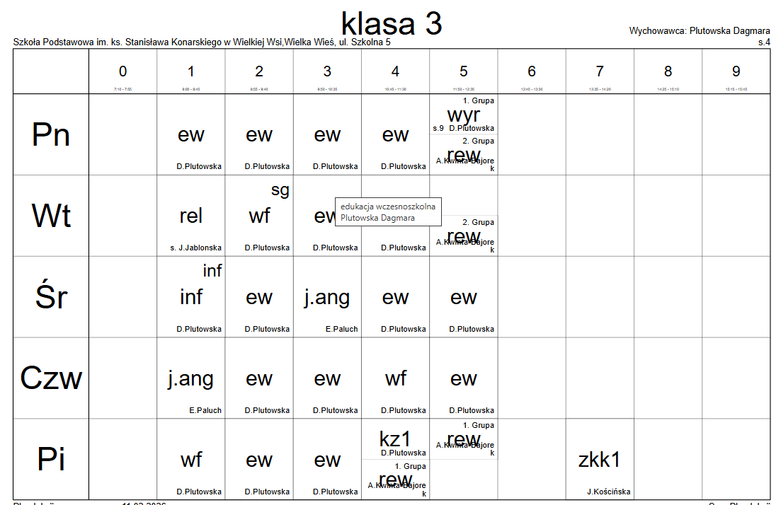 zkk - zajęcia korekcyjno-kompensacyjne (dotyczy wybranych uczniów z klasy)