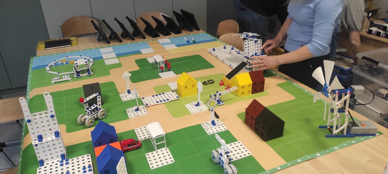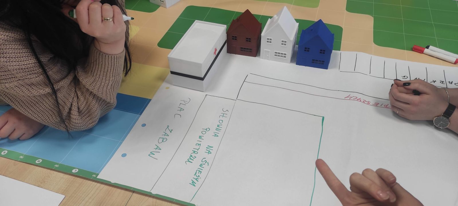 Pierwsze dwa dni upłynęły nam pod znakiem kreatywnego budowania i planowania. Z użyciem klocków modułowych projektowaliśmy i budowaliśmy makiety naszej idealnej okolicy.