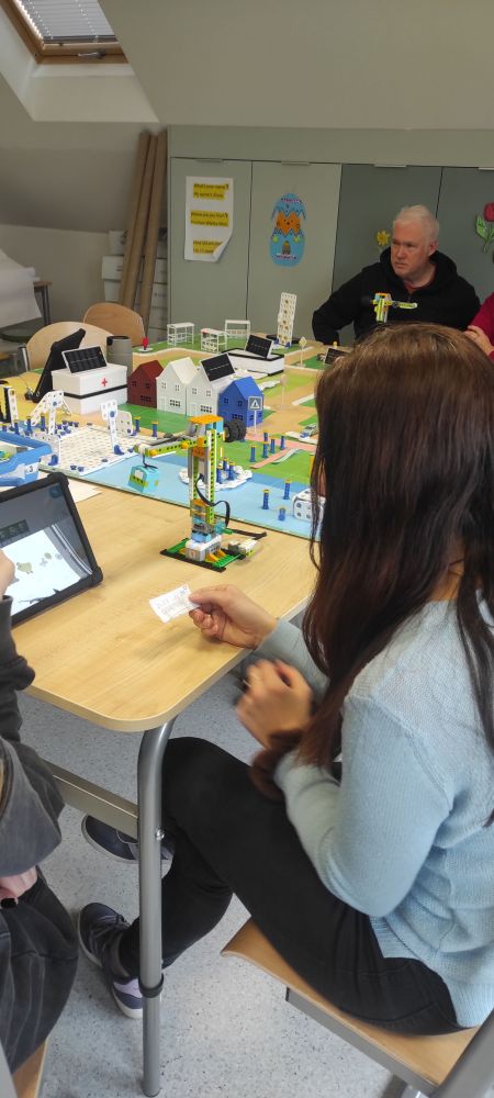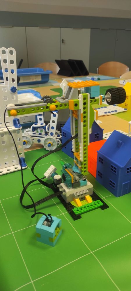 Podczas warsztatów wykorzystaliśmy również nasze szkolne klocki LEGO, aby zaprojektować i zbudować w pełni działający dźwig. Z dumą ogłaszamy – nasza konstrukcja działała bez zarzutu!