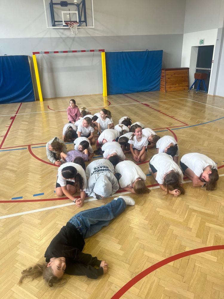 Uczennice starszych klas przeprowadziły aktywną przerwę dla chętnych z klas I-III. W tym dniu na sali gimnastycznej odbyło się również podsumowanie i zakończenie akcji.