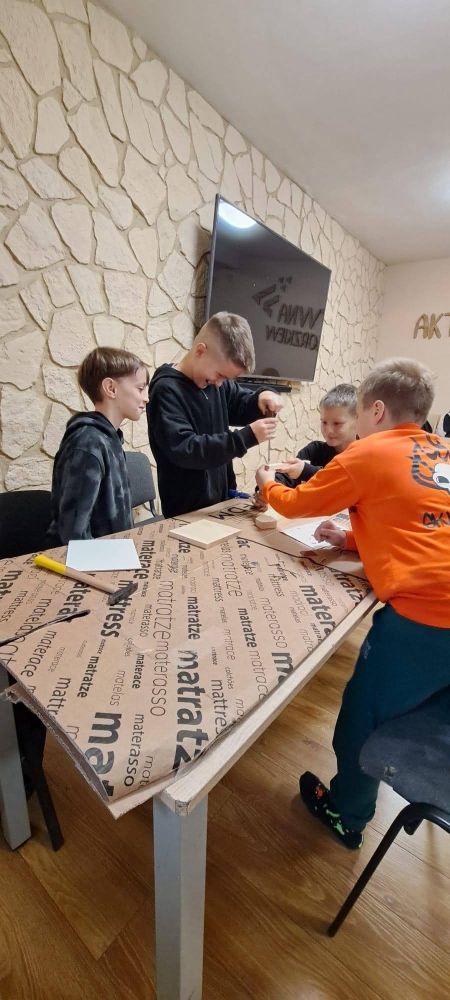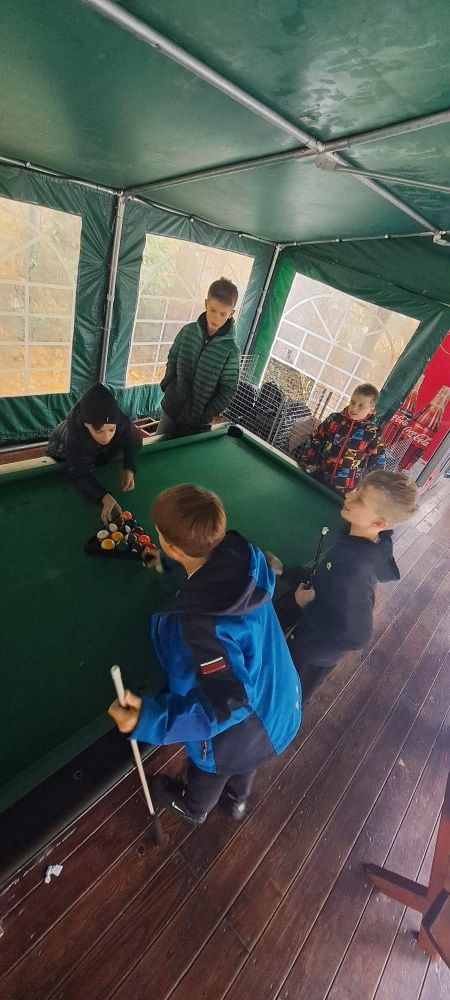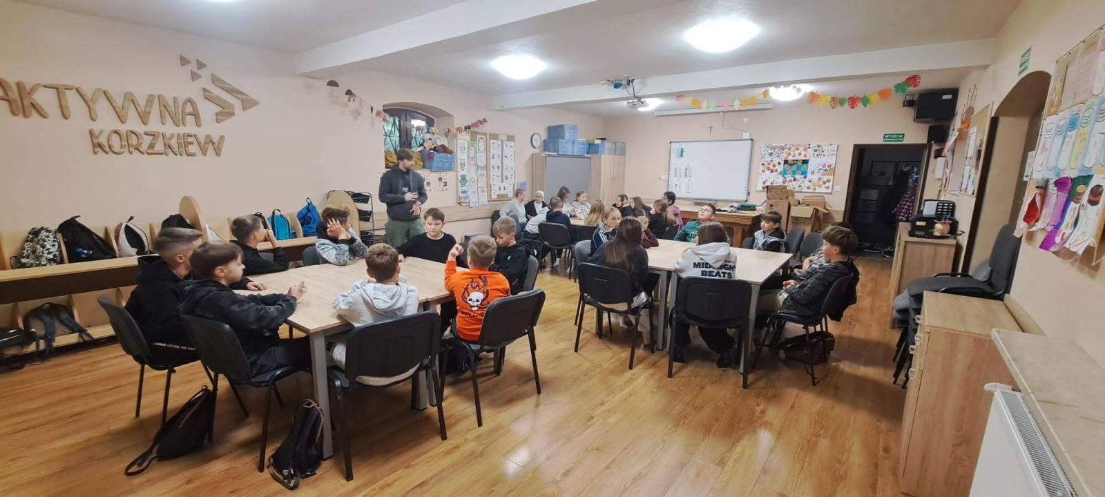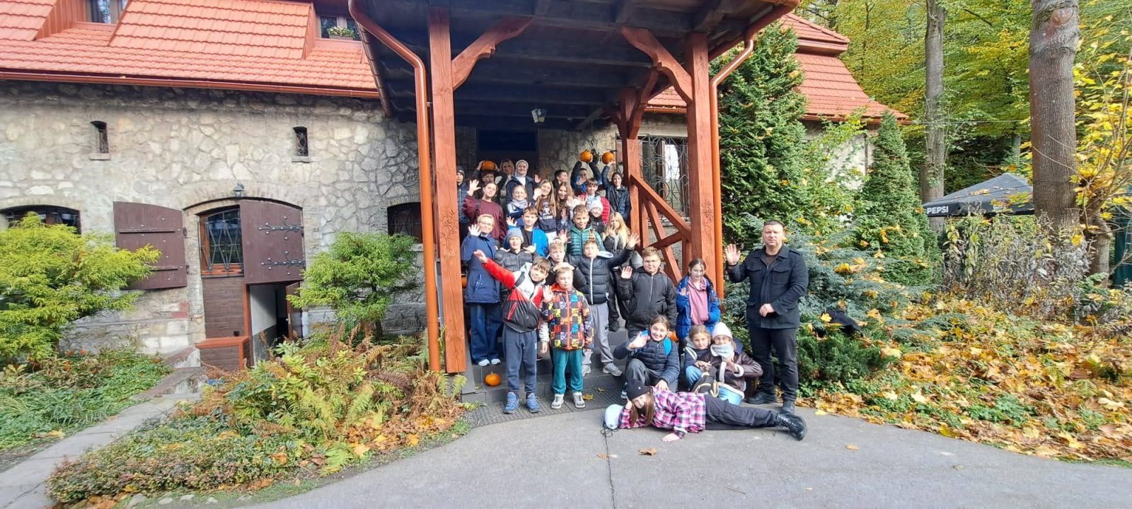21 października 2025 r. uczniowie klasy piątej wraz z opiekunami wzięli udział w warsztatach edukacyjnych z ekologii, ochrony zwierząt oraz ochrony dziedzictwa przyrodniczego, które zostały zorganizowane i sfinansowane w ramach projektu przez Fundację Mój Sen. Warsztaty odbyły się w przepięknej, jesiennej scenerii Ośrodka Wypoczynkowego w Korzkwi. Atrakcji było co nie miara. Uczniowie budowali w grupach karmniki dla ptaków, wzięli udział w grze terenowej, miło spędzali czas korzystając z atrakcji ośrodka, tj. tyrolka, bilard, na koniec pod okiem kucharza zrobili pizzę, każdy taką, jaką lubi najbardziej. Najedzeni, pełni wrażeń i z naładowanymi bateriami wróciliśmy do szkoły.
