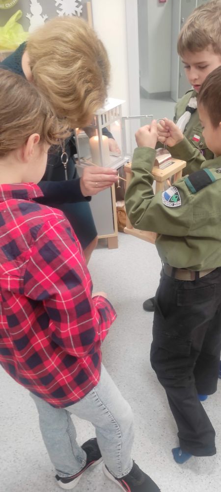 Po wizycie harcerzy Światło rozpoczęło wędrówkę po wszystkich klasach i zawitało na czas klasowych wigilii.