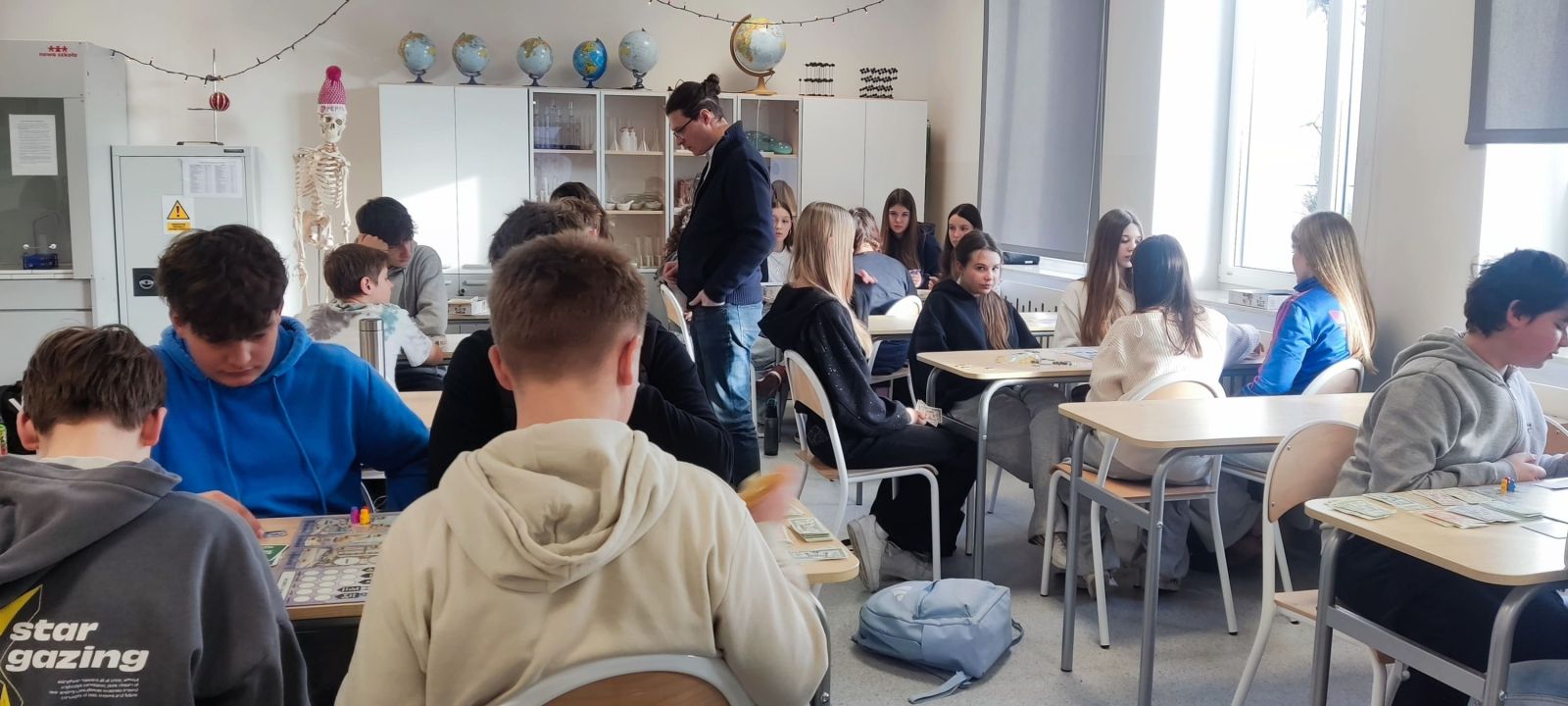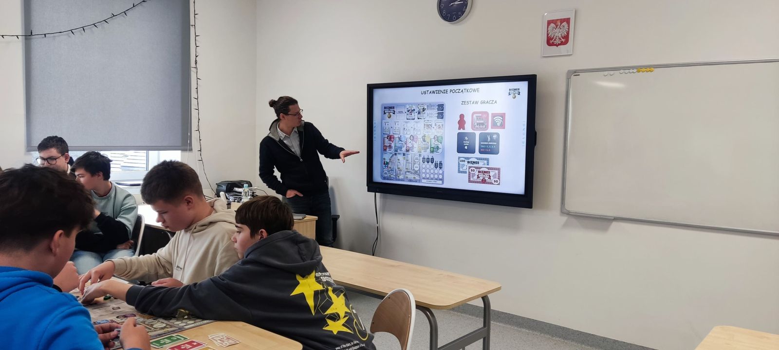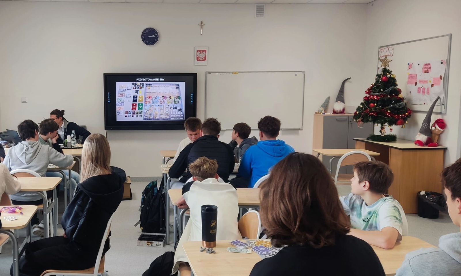 W dniu 12 grudnia uczniowie klasy ósmej uczestniczyli w warsztatach pt. „Czy chciał(a)bym prowadzić własną firmę”. Zajęcia poprowadził dr hab. Mateusz Lewandowski, prof. UJ, z Wydział Zarządzania i Komunikacji Społecznej UJ Instytutu Spraw Publicznych, który przygotował dla uczniów grę edukacyjną swojego autorstwa – „Biznes na medal”.