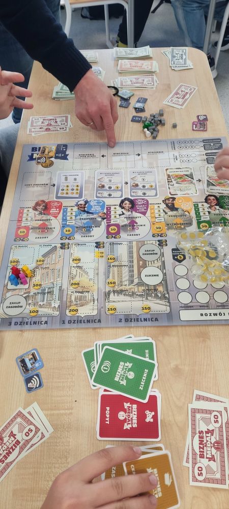 Na początku spotkania prowadzący przedstawił instrukcję gry oraz zaprezentował przykładowe firmy. Następnie uczniowie rozpoczęli rozgrywkę, podczas której: