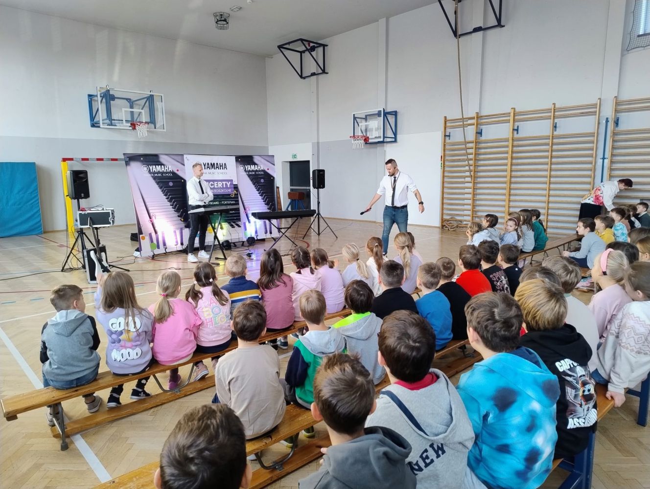 5 listopada uczniowie klas 1-5 wzięli udział w wyjątkowym koncercie z przymrużeniem oka.Wodzireje ze szkoły muzycznej Yamaha Music School przekonali nas, że muzykowanie może sprawić radość każdemu niezależnie od jego predyspozycji. Kluczem do sukcesu jest podejście do swojej pasji z humorem.