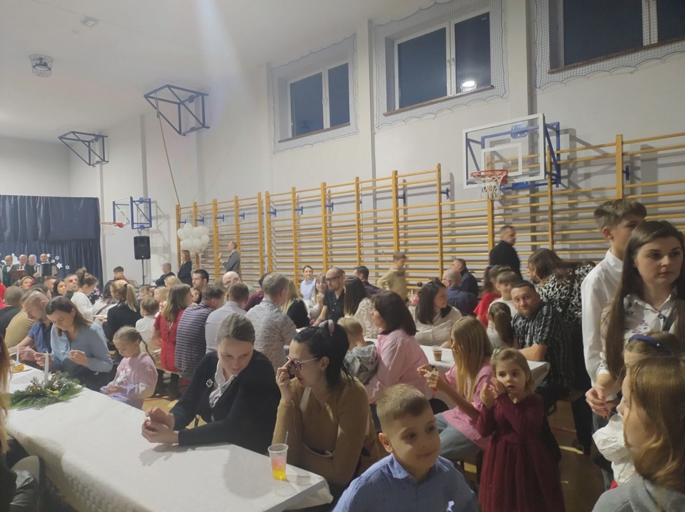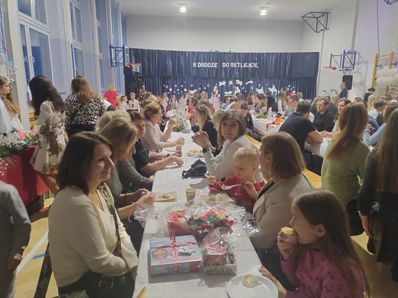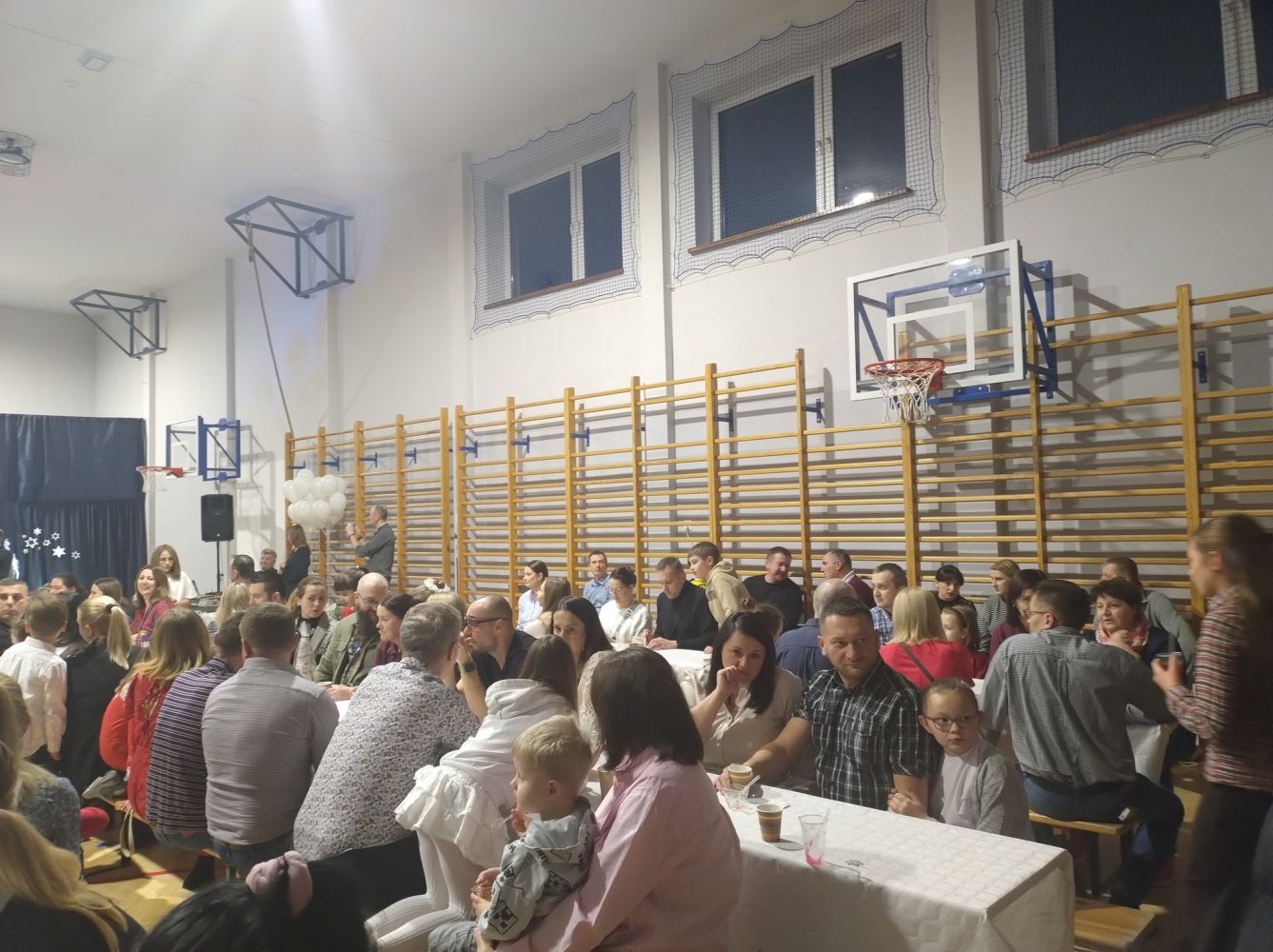 Seniorzy z Klubu Seniora z Wielkiej Wsi, zaproszeni przez nas do występów, śpiewanymi przez siebie kolędami uroczyście otwarli nasze wydarzenie. Po pierwszych występach był czas na zakupy świąteczne na stoisku ze świątecznymi ozdobami przygotowanymi przez naszą świetlicę i panie Anię Tarasin i Joannę Pezdan, ale przede wszystkim był czas na wspólne biesiadowanie przy pysznych pierogach i domowych wypiekach. Zwieńczeniem całego wydarzenia był wzruszający koncert naszych uczniów, którzy zachwycili wszystkich nie tylko śpiewem, ale też pięknym tańcem.