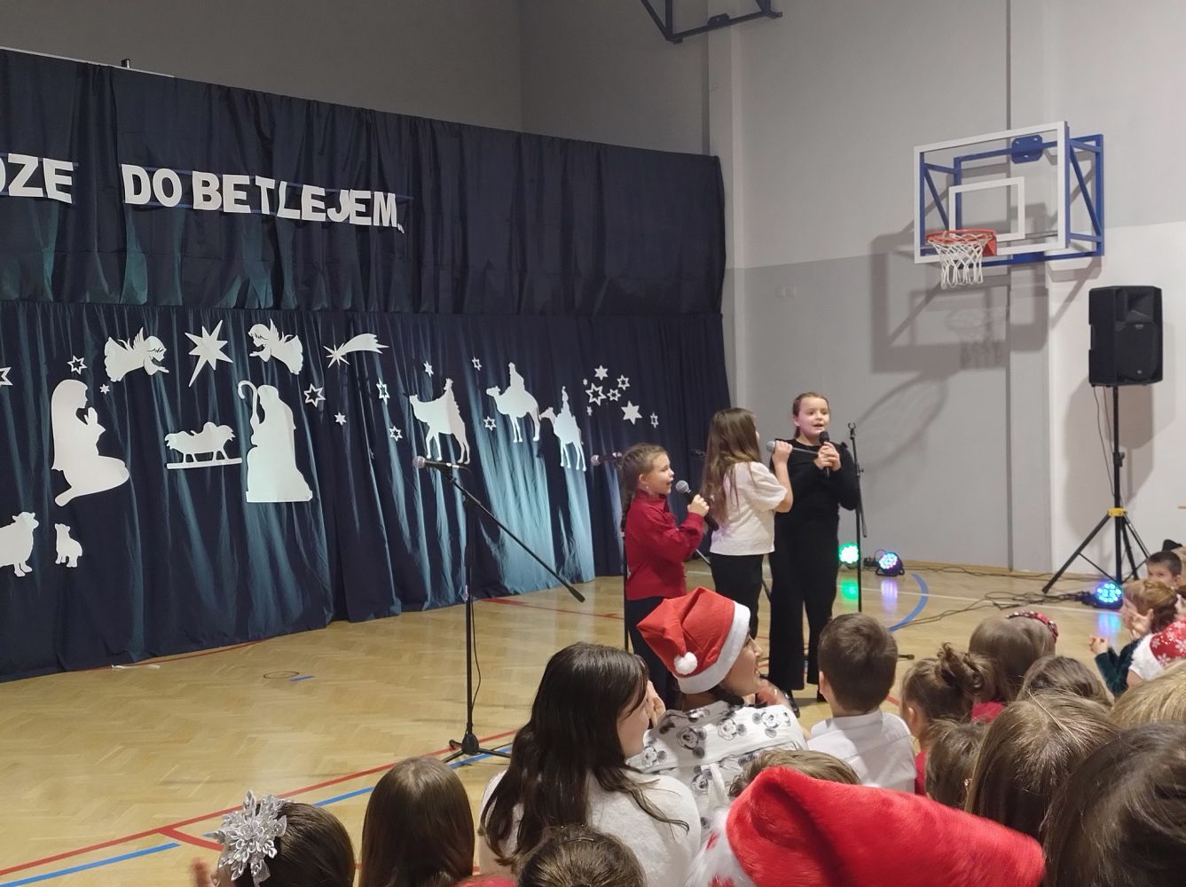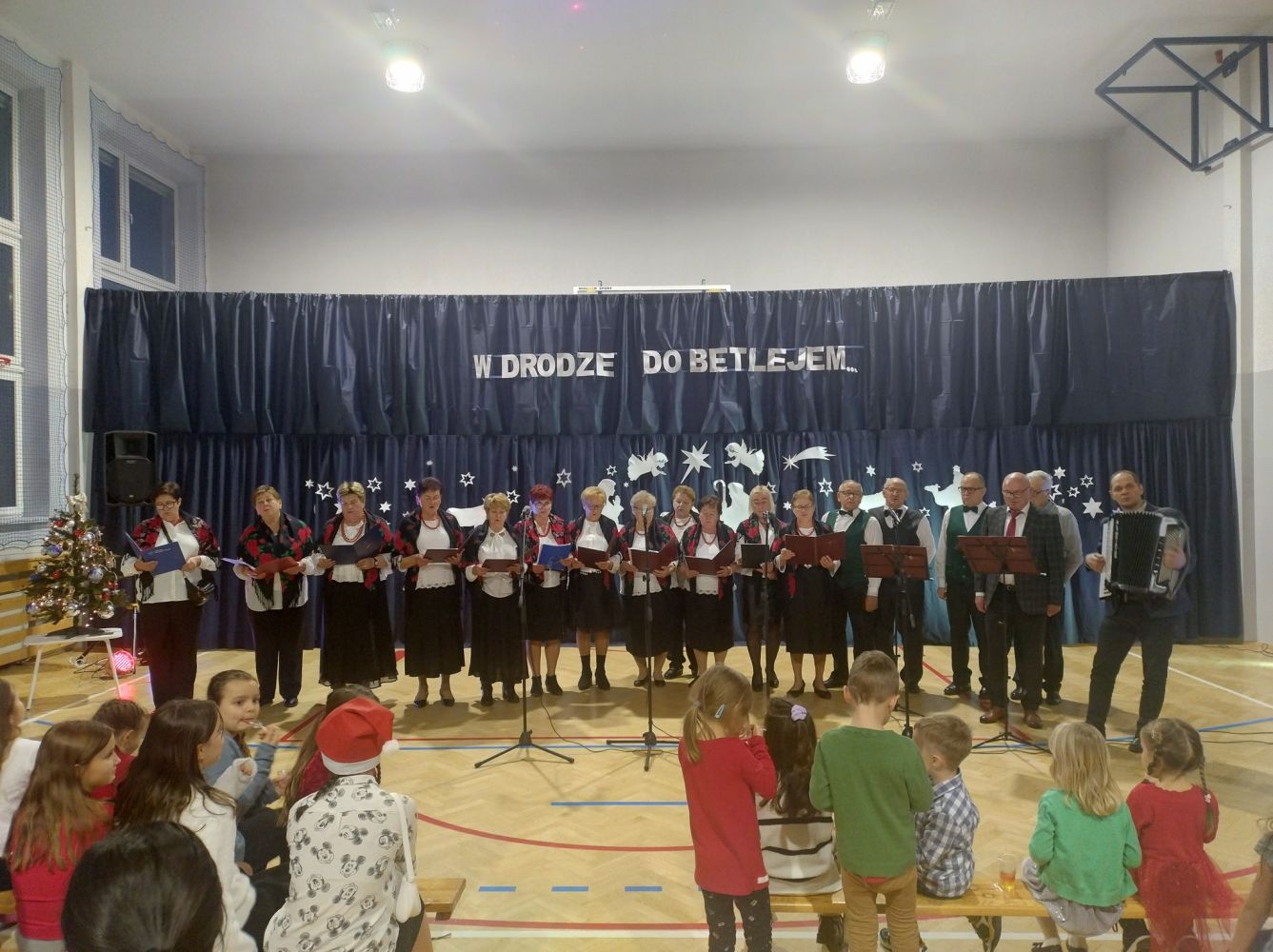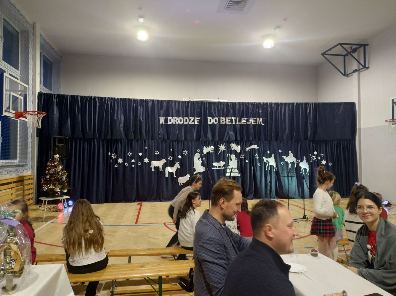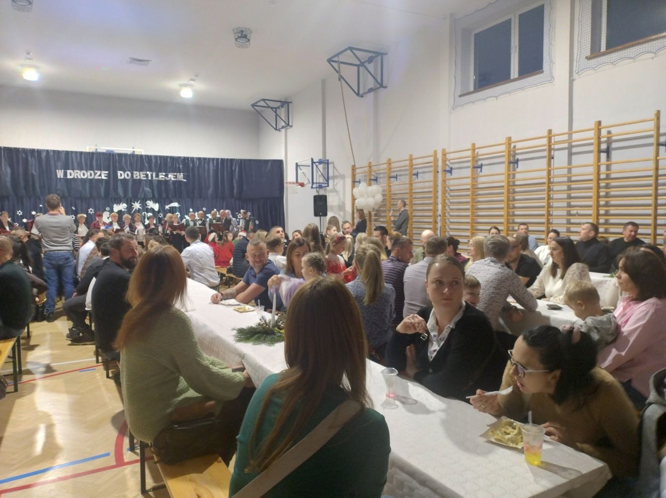 Seniorzy z Klubu Seniora z Wielkiej Wsi, zaproszeni przez nas do występów, śpiewanymi przez siebie kolędami uroczyście otwarli nasze wydarzenie. Po pierwszych występach był czas na zakupy świąteczne na stoisku ze świątecznymi ozdobami przygotowanymi przez naszą świetlicę i panie Anię Tarasin i Joannę Pezdan, ale przede wszystkim był czas na wspólne biesiadowanie przy pysznych pierogach i domowych wypiekach. Zwieńczeniem całego wydarzenia był wzruszający koncert naszych uczniów, którzy zachwycili wszystkich nie tylko śpiewem, ale też pięknym tańcem.