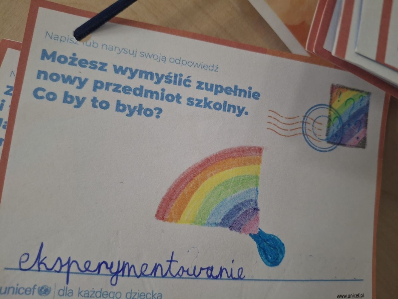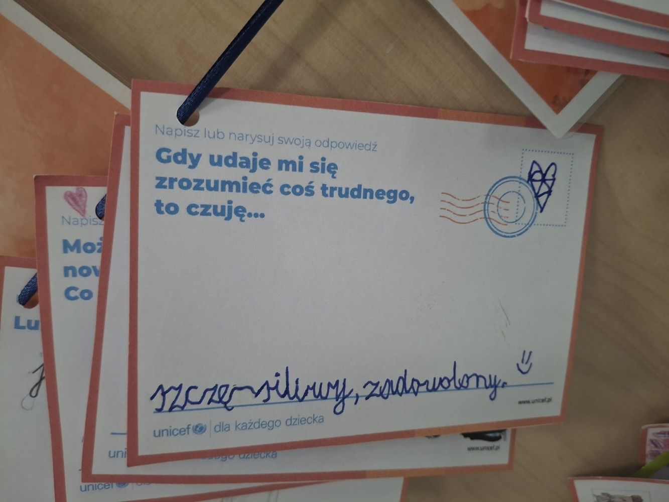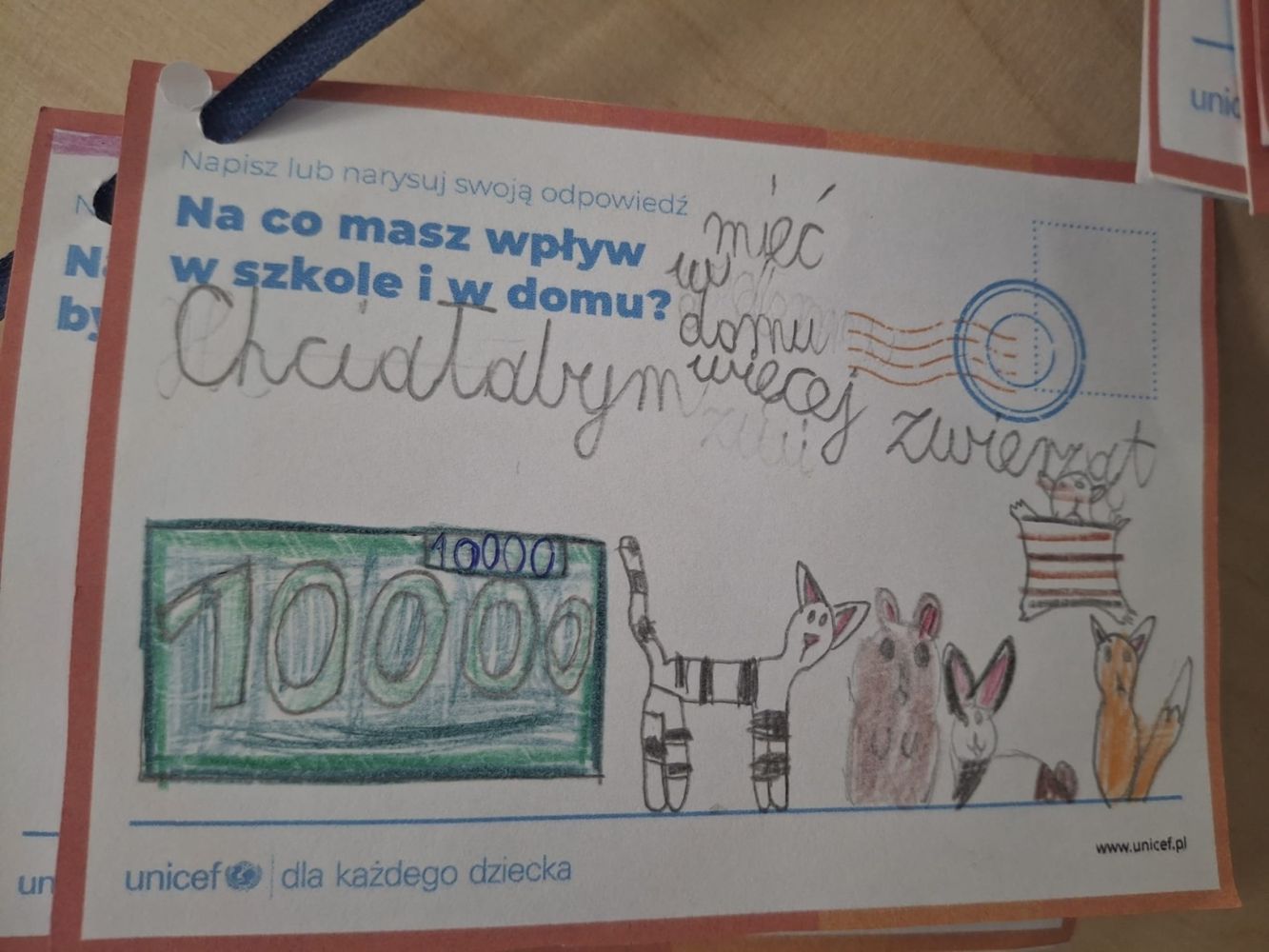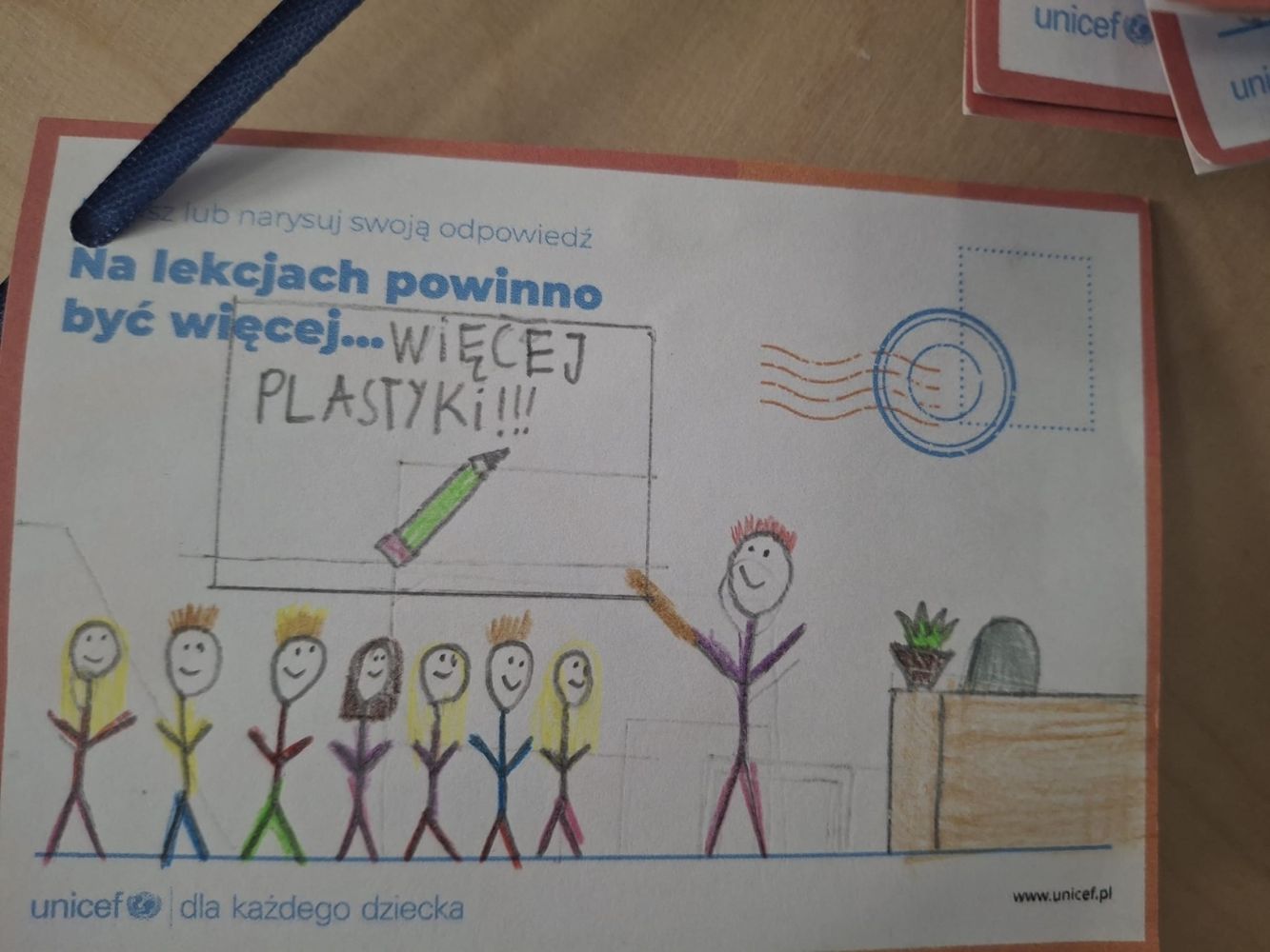 Niezmiennie przypominamy o tym zarówno uczniom jak i dorosłym. W tym roku w ramach obchodów Międzynarodowego Dnia Praw Dziecka uczniowie Szkoły Podstawowej w Wielkiej Wsi uczestniczyli w warsztatach prowadzonych przez panie Monikę Olek, Julię Sołtysik i Annę Kwintę-Bajorek. Dzieci z edukacji wczesnoszkolnej przygotowały specjalne pocztówki