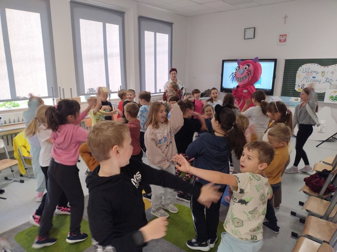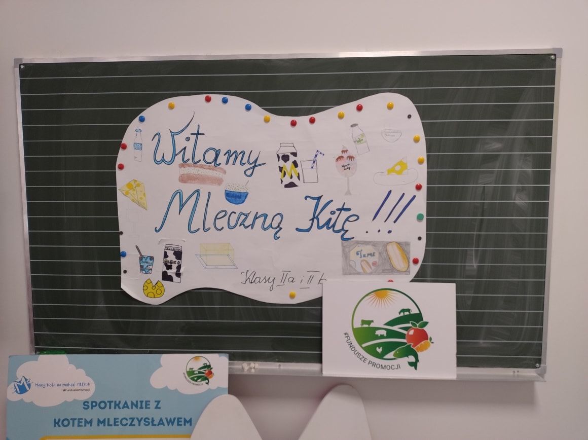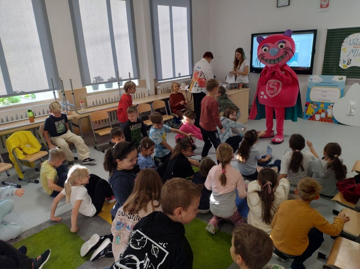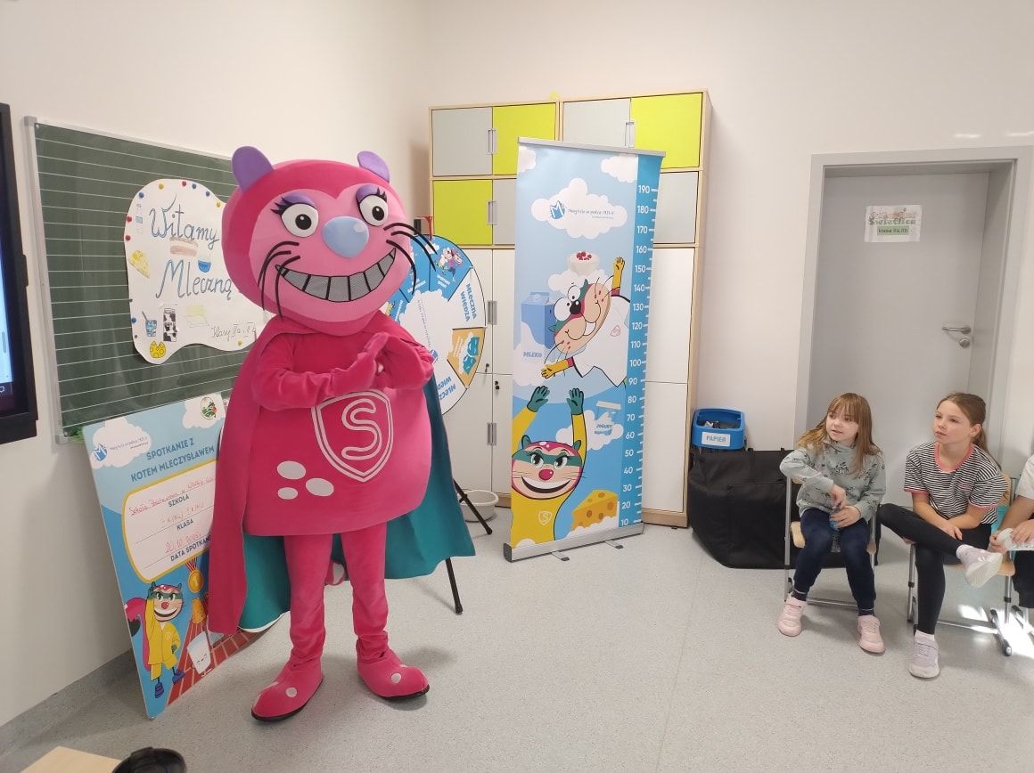 20 października klasę II a i II b odwiedziła wyżej wspomniana bohaterka projektu „Mamy kota na punkcie mleka”. Otóż Mleczna Kita przemierza Polskę i zachęca dzieci do zdrowego odżywiania w oparciu o mleko. Cała kampania „Mamy kota na punkcie mleka” realizowana jest przez Polską Izbę Mleka we współpracy z Polską Federacją Hodowców Bydła i Producentów Mleka. Akcja ma na celu zwrócenie uwagi najmłodszych na zalety mleka i produktów mlecznych oraz wskazanie powodów, dla których powinny być one obecne w codziennej diecie.