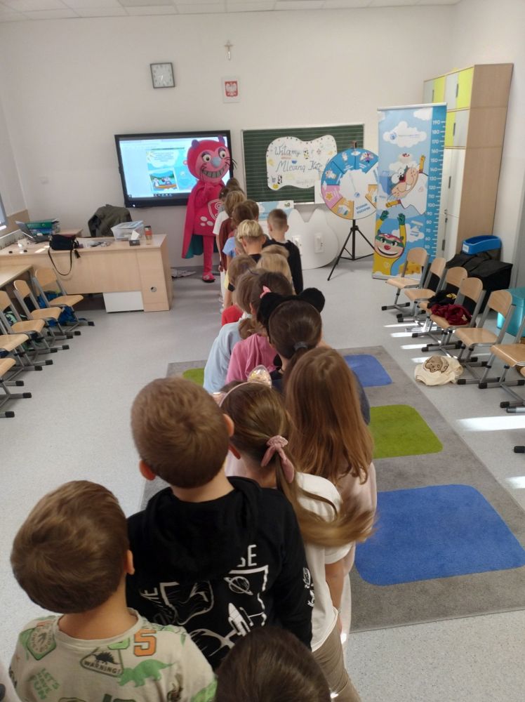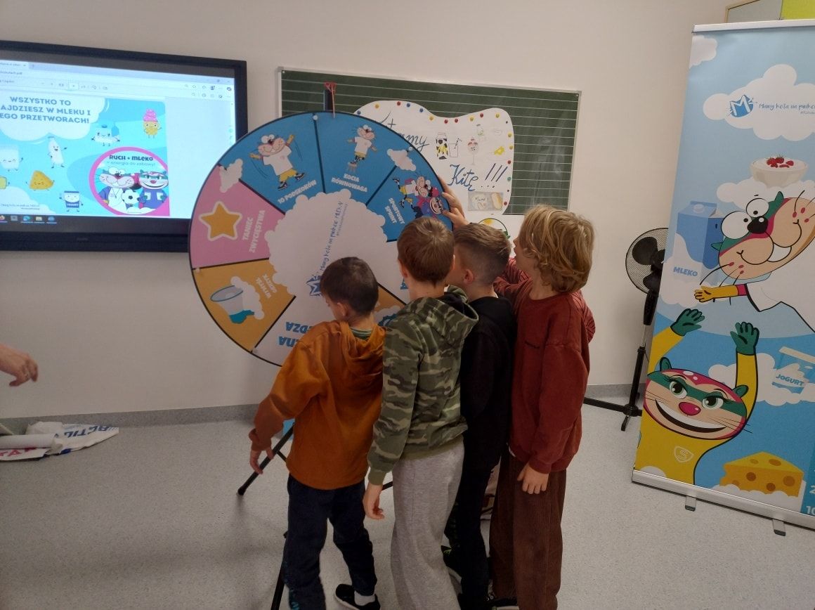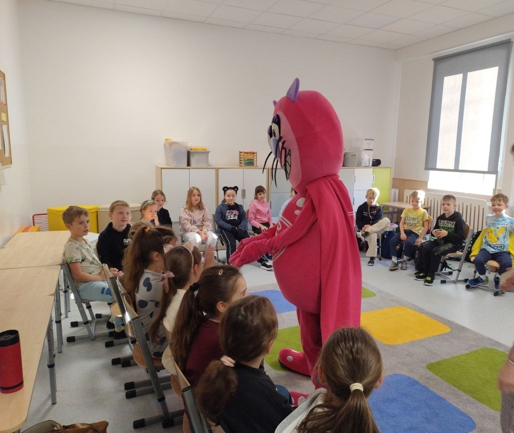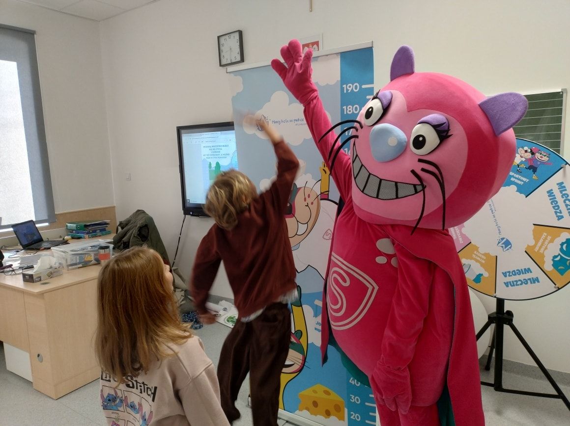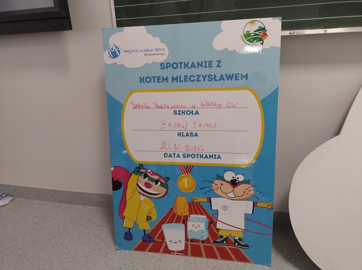 20 października klasę II a i II b odwiedziła wyżej wspomniana bohaterka projektu „Mamy kota na punkcie mleka”. Otóż Mleczna Kita przemierza Polskę i zachęca dzieci do zdrowego odżywiania w oparciu o mleko. Cała kampania „Mamy kota na punkcie mleka” realizowana jest przez Polską Izbę Mleka we współpracy z Polską Federacją Hodowców Bydła i Producentów Mleka. Akcja ma na celu zwrócenie uwagi najmłodszych na zalety mleka i produktów mlecznych oraz wskazanie powodów, dla których powinny być one obecne w codziennej diecie.