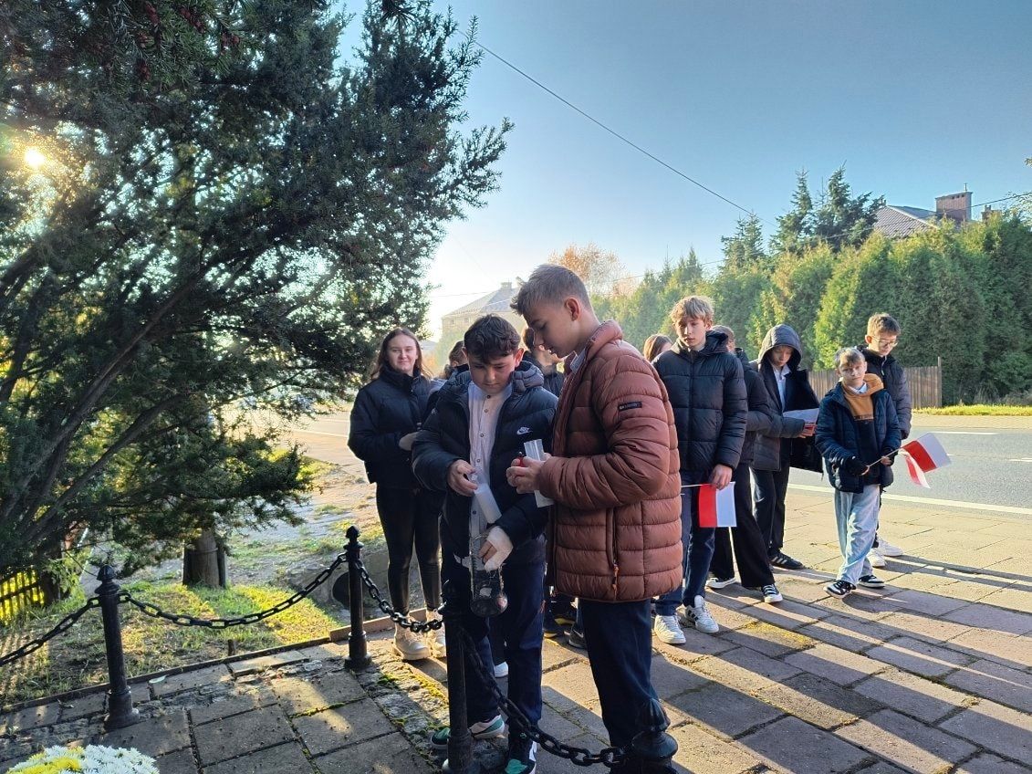 Uczniowie klasy siódmej wraz z nauczycielem historii p. Magdaleną Zięciną, w imieniu całej szkolnej społeczności zapalili znicze pod pomnikiem poległych powstańców styczniowych w Szycach.