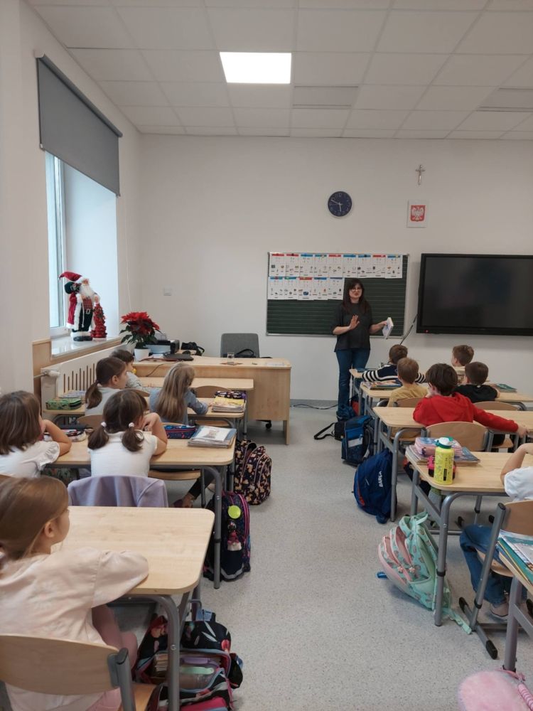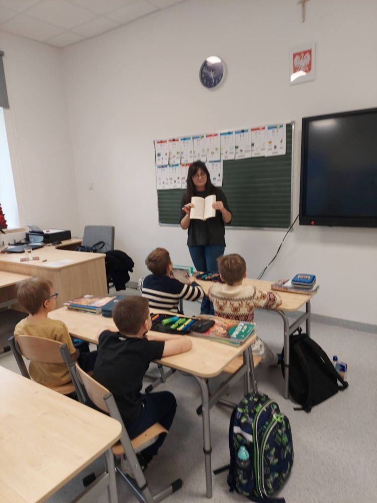 8 grudnia w klasie I odbyło się spotkanie z niezwykłym gościem - pisarką Panią Klaudią Muniak, a prywatnie mamą Filipa. Podczas spotkania dzieci dowiedziały się jak wygląda proces powstawania książki - od pierwszego pomysłu aż do gotowej książki.