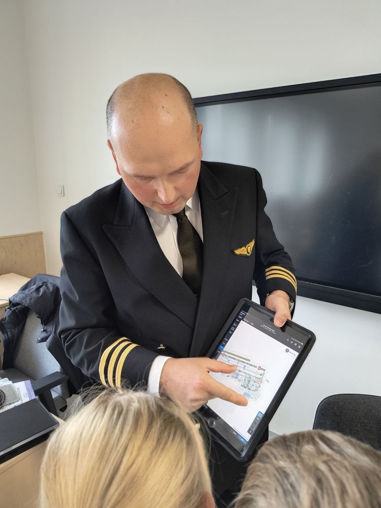 Dzięki jego prelekcji uczniowie dowiedzieli się na czym polega zawód pilota, jak wygląda jego szkolenie i zakres obowiązków, natomiast prezentacja multimedialna ukazała nam świat widziany z lotu ptaka.