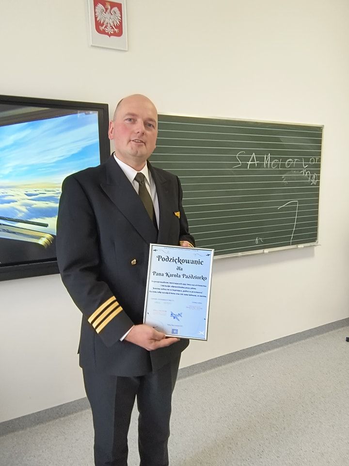 Dziękujemy Panu Karolowi za przybycie i wspaniałe spotkanie, zapewniamy też, iż w tej szkole znajdzie wielu naśladowców podzielających jego zainteresowania zawodowe. Życzymy mu tyle samo lądowań, co startów.