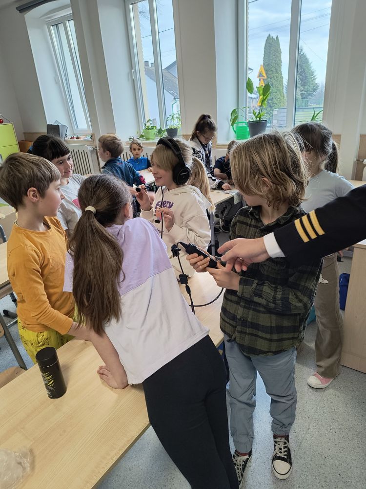 Podczas spotkania pilot przytaczał liczne ciekawostki ze swoich podniebnych wypraw, odpowiadał na pytania dzieci oraz demonstrował mapy i sprzęt lotniczy.