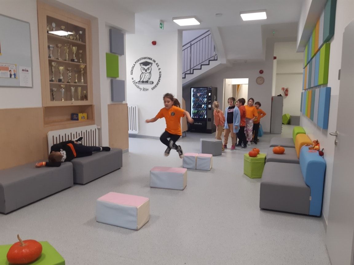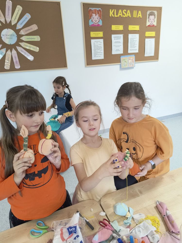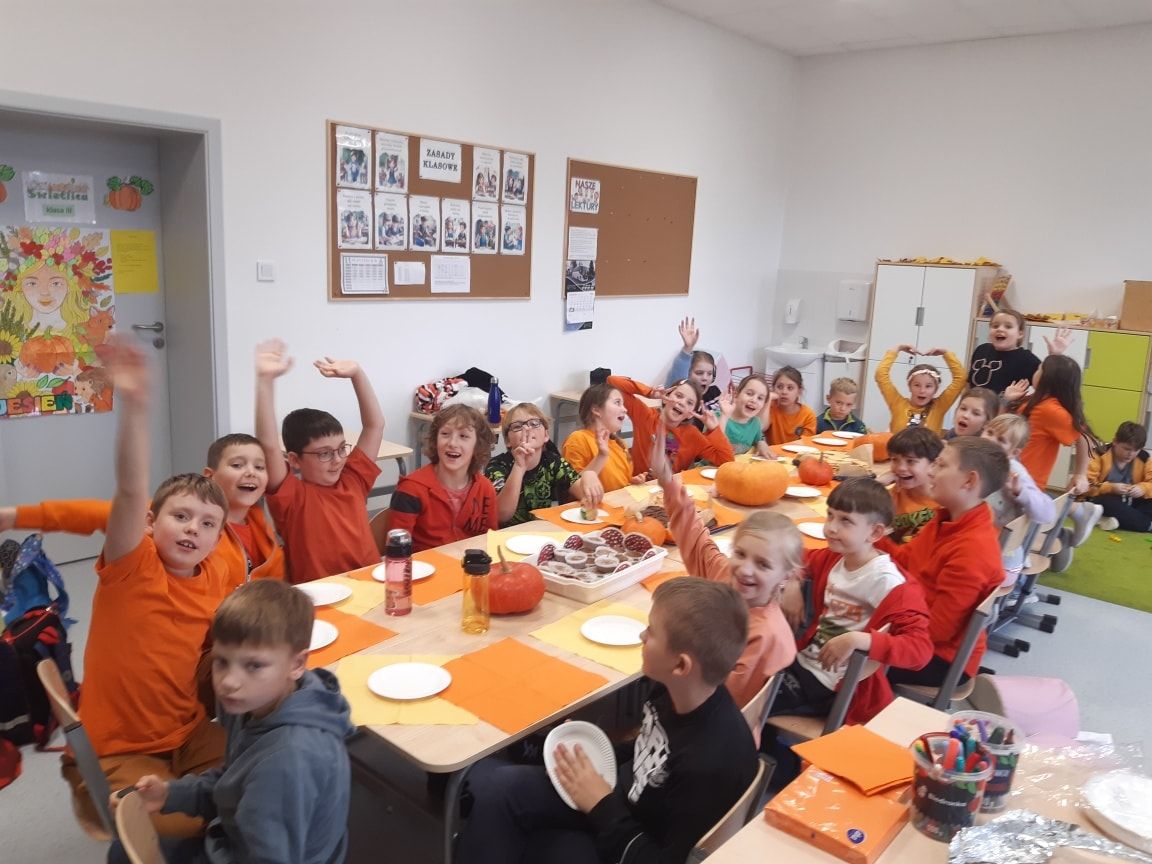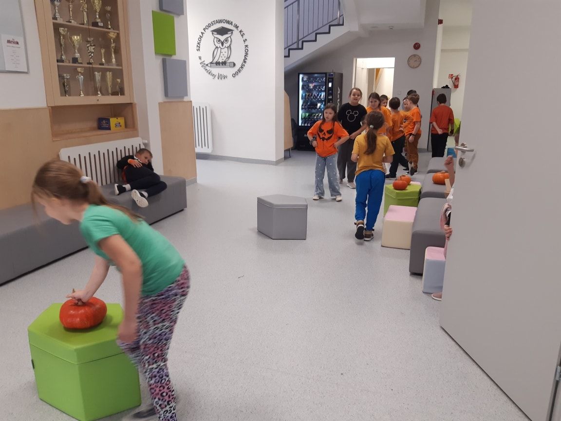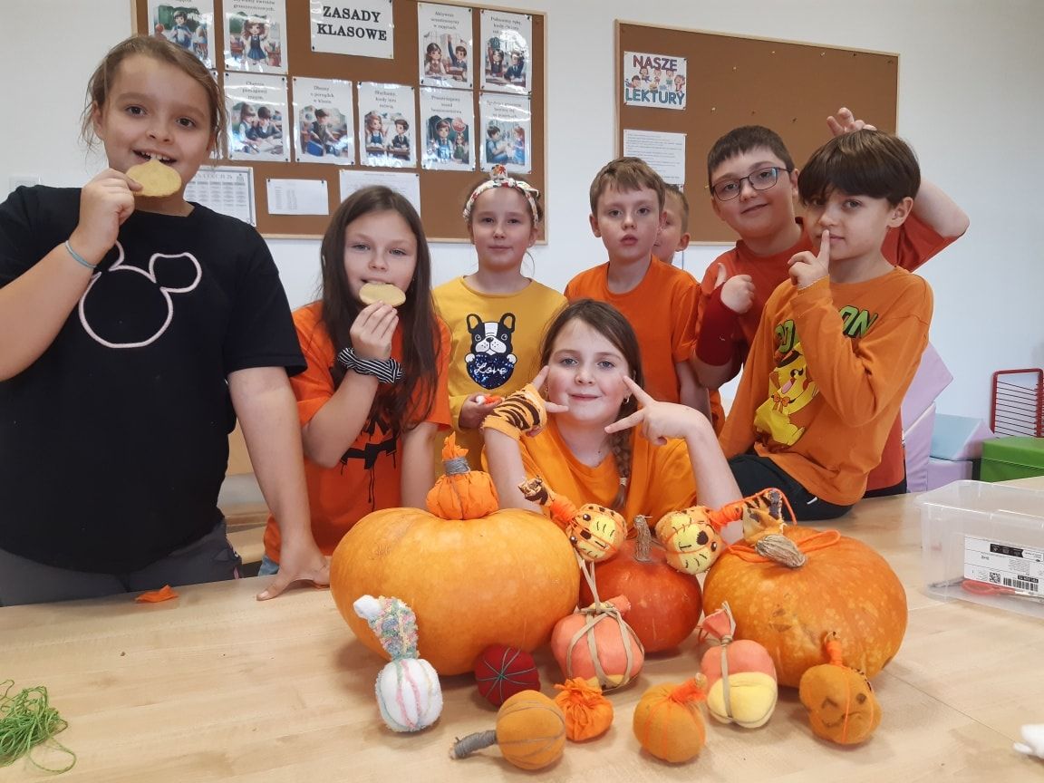 przygotowanych przez rodziców z kl. 1, 2a, 2b oraz 3. Potem, zabraliśmy się do robienia dyń z waty, skarpetek i włóczki - wyszły całkiem nieźle! Na koniec wzięliśmy udział w dyniowych zabawach sportowych. Jednym słowem było dyniowo!