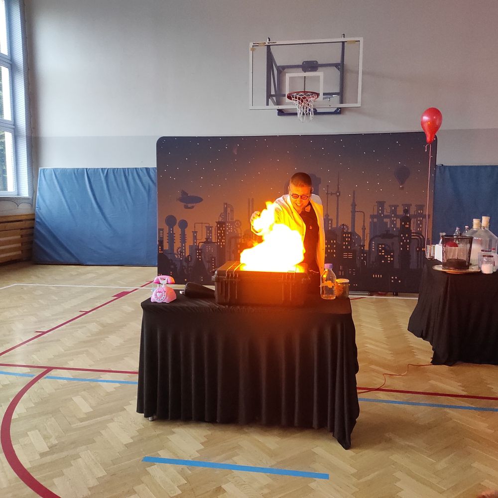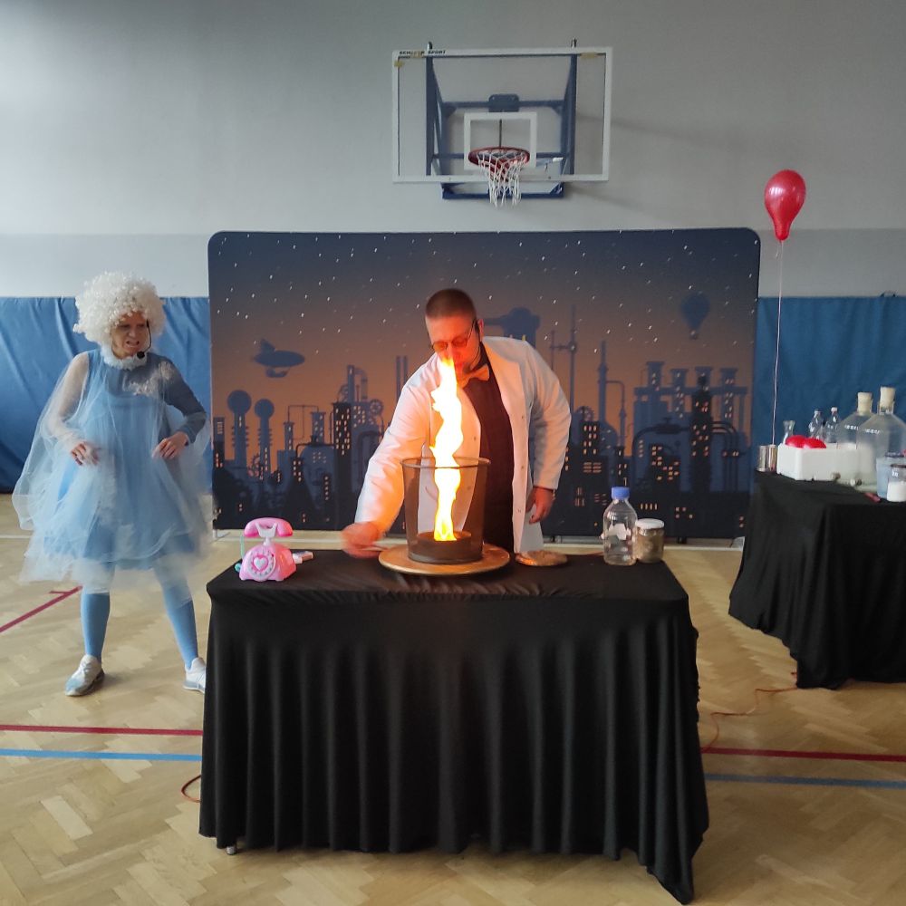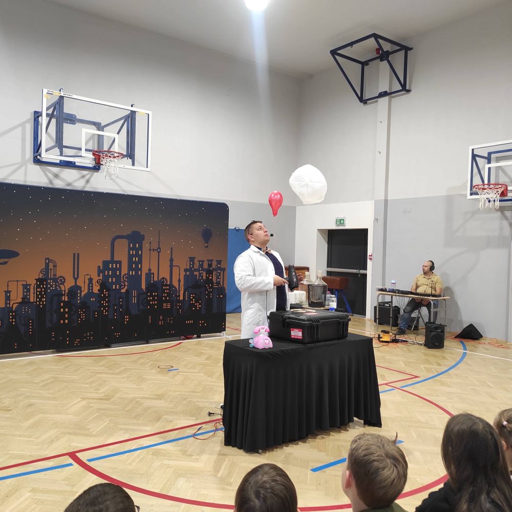 15 października zawitali do nas nietypowi goście.....czyli Profesorek i Chmurka jako mistrzowie energii. W wyjątkowym spektaklu naukowo-edukacyjnym wprowadzili dzieci w świat ekologii, energii i fizycznych eksperymentów. Występujący w spektaklu bohaterowie – Chmurka Cumuluska i Profesorek – poprzez humor, interakcję z dziećmi i spektakularne pokazy naukowe, pomagali uczniom zrozumieć zjawiska fizyczne i chemiczne.