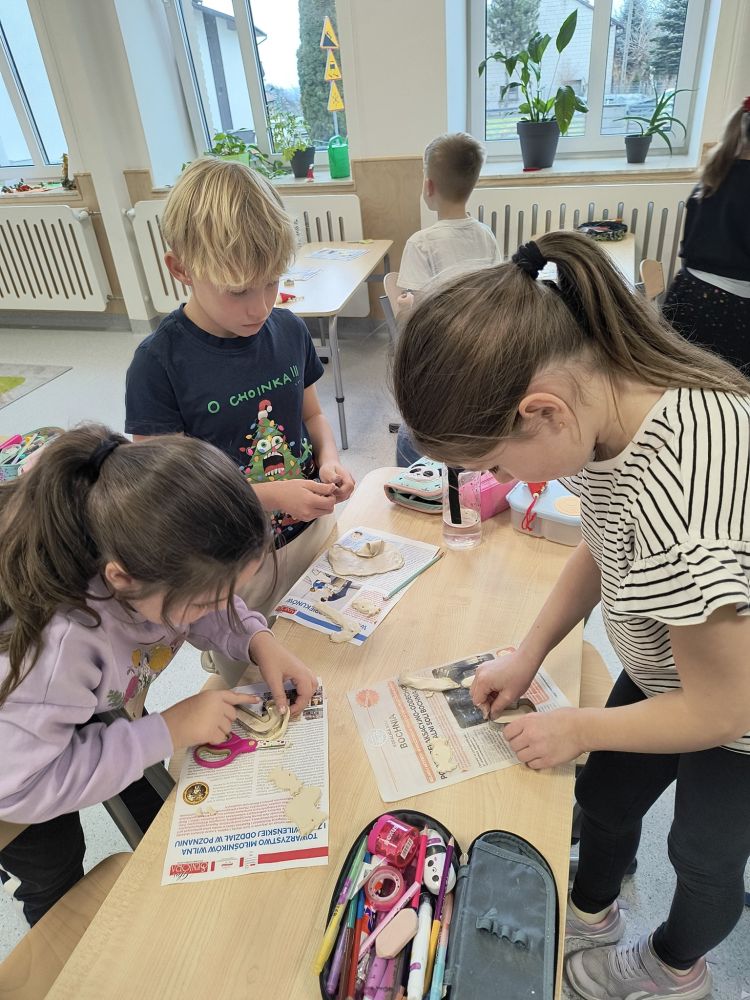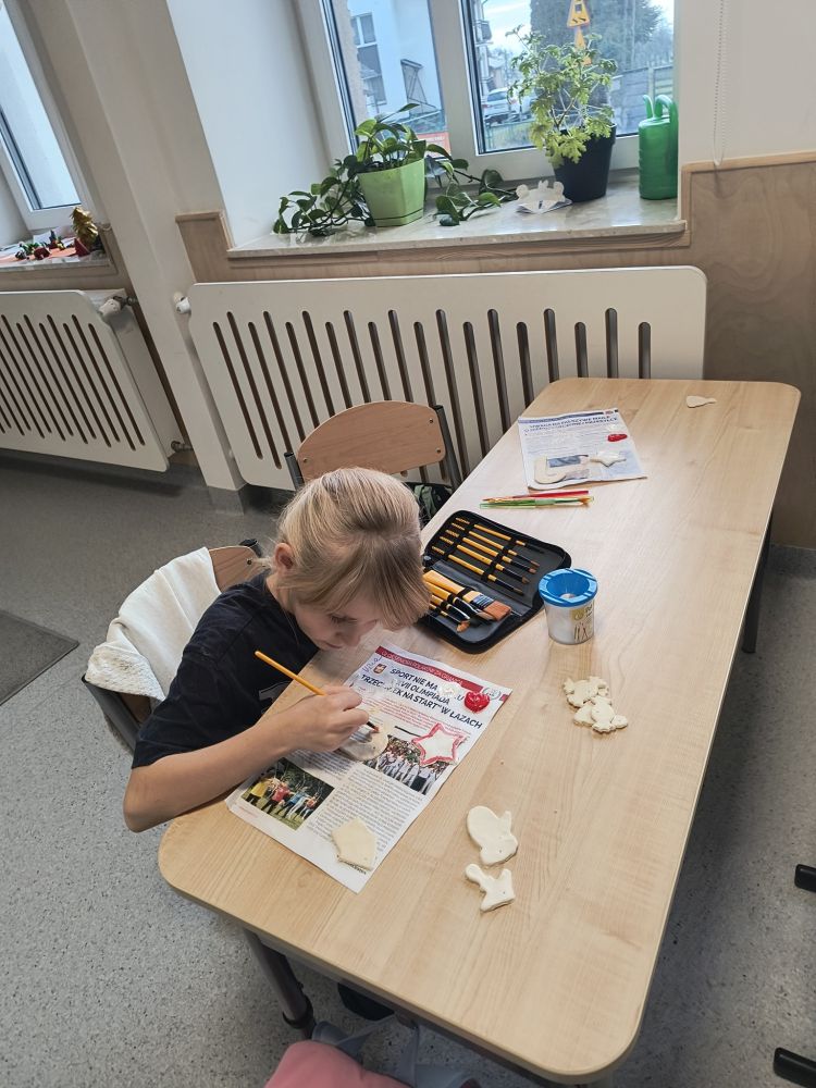 Uczniowie z zapałem wykonywali piękne ozdoby świąteczne, wykazując przy tym wiele kreatywności. Wspólna twórczość w atmosferze zabawy, zaangażowanie, przeżyte emocje to cenne doświadczenie budujące jedność klasy.