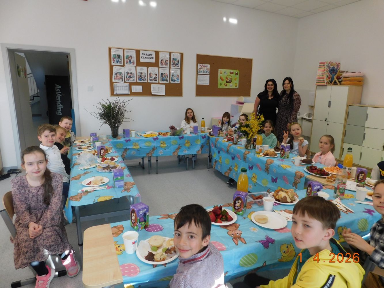 1 kwietnia upłynął nam w wyjątkowo świątecznej atmosferze. Wspólne świętowanie rozpoczęliśmy od uroczystych śniadań wielkanocnych w klasach – było pysznie, kolorowo i bardzo rodzinnie!