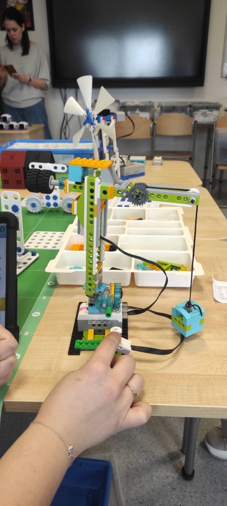Podczas warsztatów wykorzystaliśmy również nasze szkolne klocki LEGO, aby zaprojektować i zbudować w pełni działający dźwig. Z dumą ogłaszamy – nasza konstrukcja działała bez zarzutu!